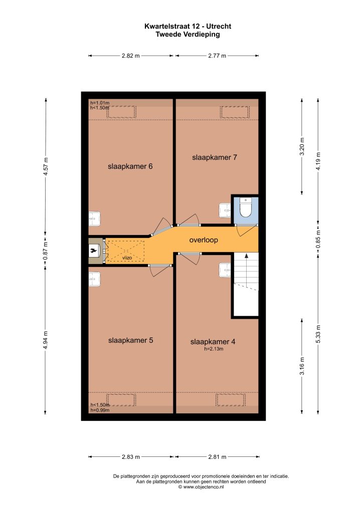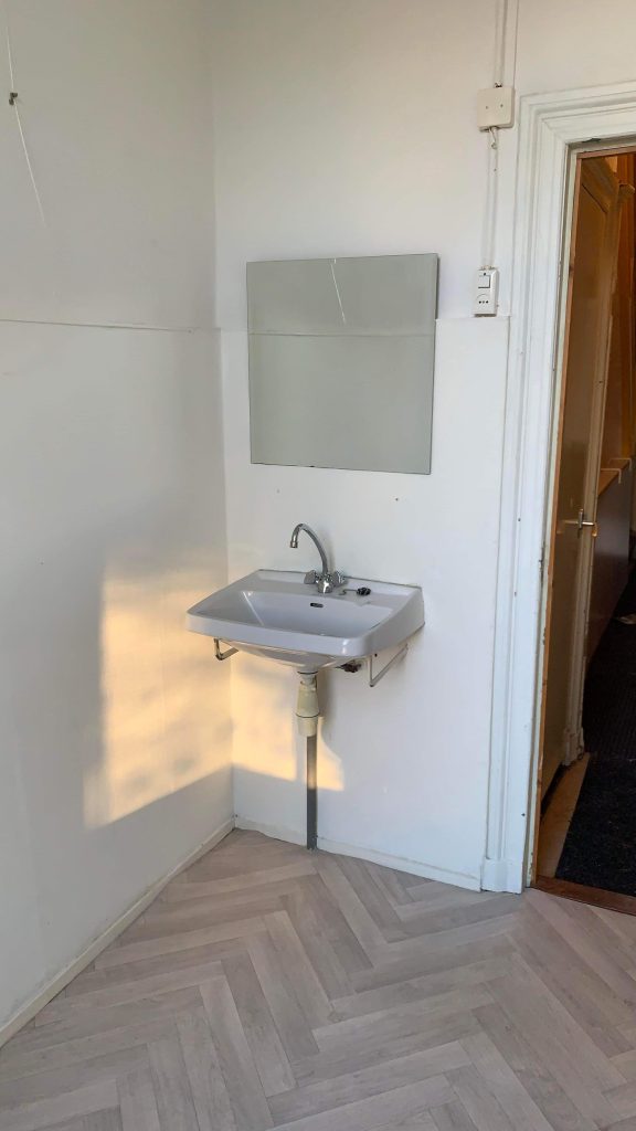It concerns a room on the second floor (room 7, 11 m2, see floorplan below) at the back of the house. The room has its own wash basin.